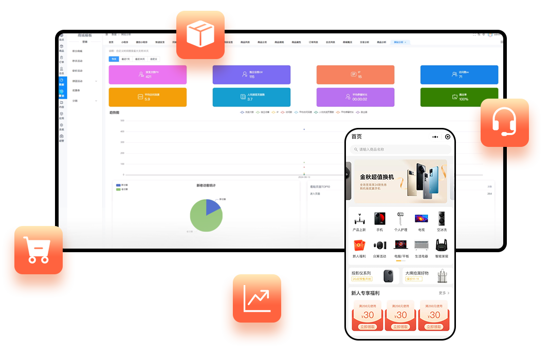 適用于數(shù)碼家電、家居家紡、日用百貨、婚慶服務(wù)、婚紗攝影、旅游、房產(chǎn)、金融等300+行業(yè)